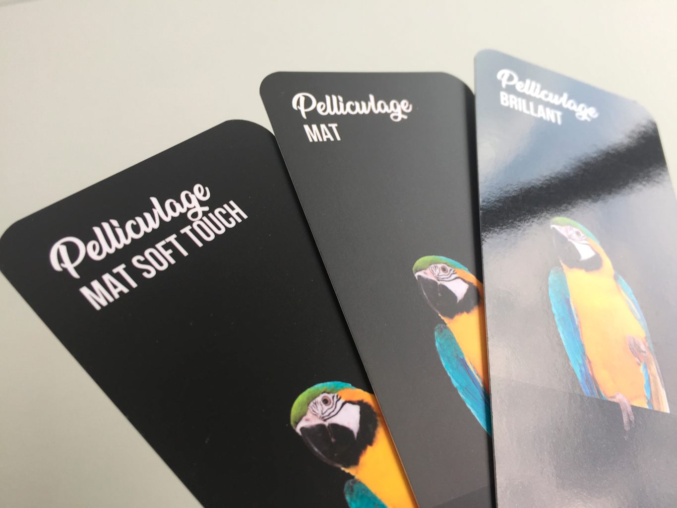 - Pelliculage soft touch : apporte une finition douce et veloutée au toucher, créant une sensation haut de gamme. Particulièrement adapté pour une impression de luxe et une expérience sensorielle unique.