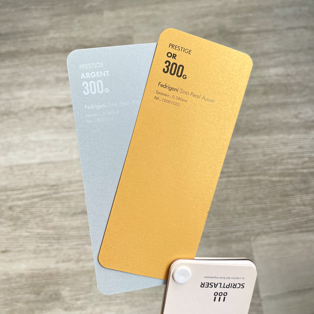 - Papier métallisé : brillant avec reflets argentés ou dorés, pour une communication impactante