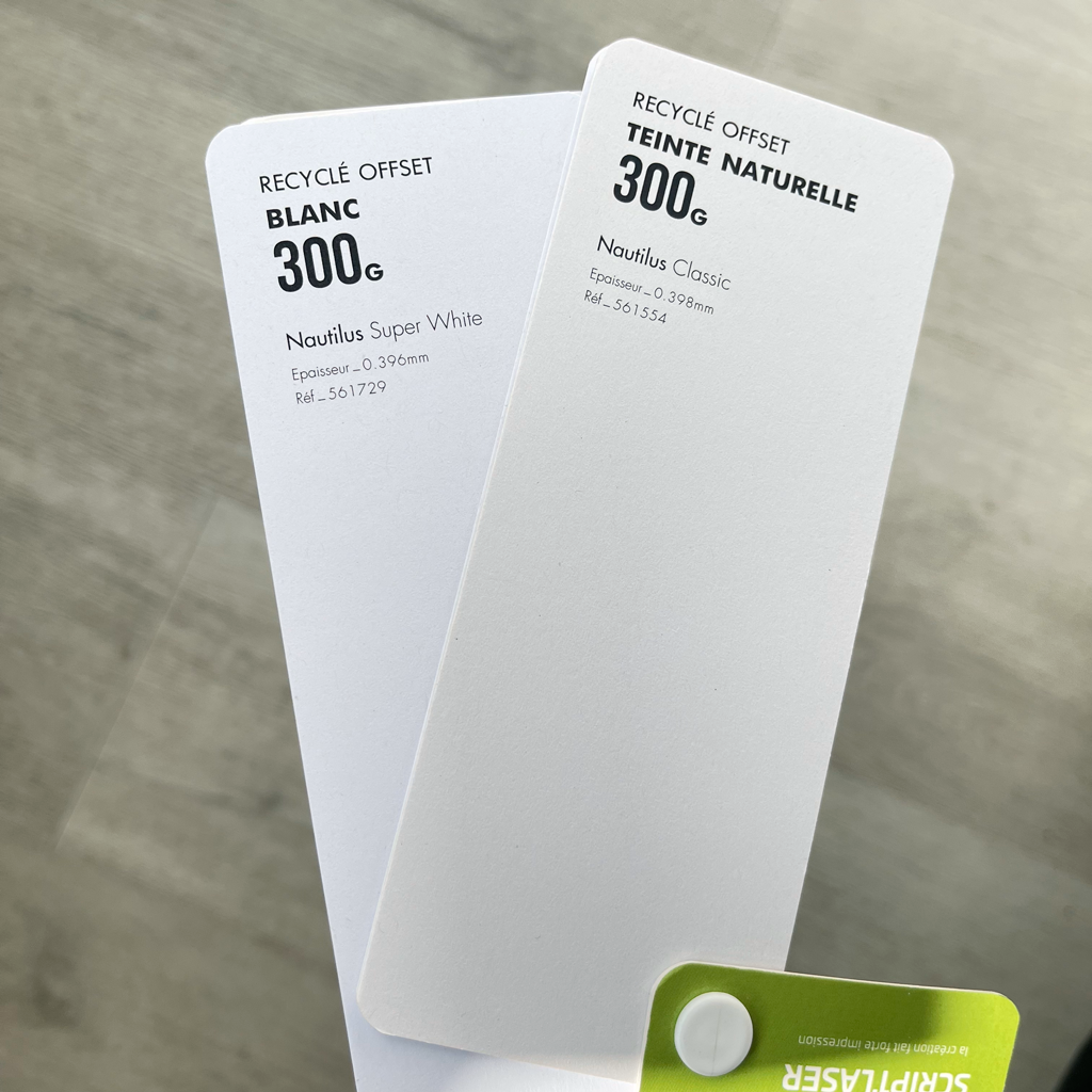 - Vous imprimez sur un papier recyclé ou éco-responsable, souvent proposé en version offset
